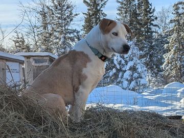 Kai is a sweet outgoing girl who LOVES water. Most days you'll find her in the pool, or hanging out in our big water trough. She gets along with other dogs, kids, good with cats and livestock. She would do well in a home with other dogs or kids.