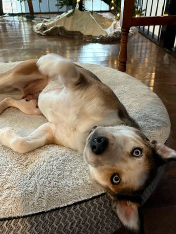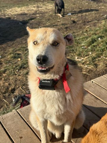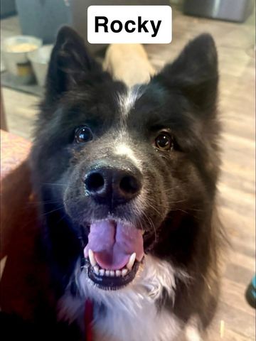 Rockey is a stunning, confident husky with a show stopping gaze, one bright blue eye and one warm brown eye. He is a well mannered boy who gets along with most other dogs, great with kids.