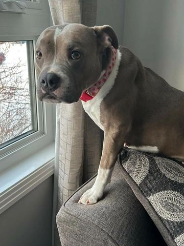 Buttertart is a sweet lovable girl, with medium energy. She would be a great running or hiking buddy. Buttertart will need to learn some manners, but is eager to please and looking for a home and family to call her own.